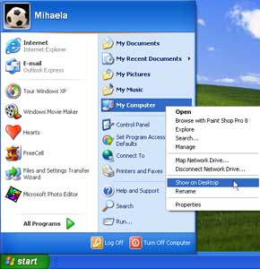Pentru a afisa pe desktop elemente care erau prezente in versiunile anterioare, apasa butonul Customize Desktop din partea stanga jos. Din fereastra Desktop Items, care va apare, poti selecta unul sau mai multe elemente care sa fie prezente pe desktop: My Documents, My Computer, My Network Places si/sau Internet Explorer.